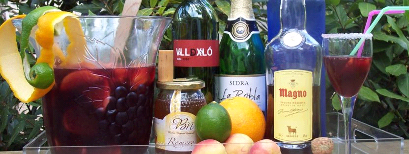 Sangria ,de basis van een sangria is altijd rode wijn, dit hoeft geen klasse wijn te zijn, een wijntje onder de 3 euro, kan goed. Vruchten geven de eigen smaak, in ons geval overduidelijk citrusvruchten en perziken, maar banaan, aardbeien (Sangria Holandès?) of appels kunnen allemaal, of appelsap wordt ook gebruikt en daar is de twist: La Robla – appelcider, uit Asturië, wel Spaans, geen Costa Blanca, maar een mousserende appelige vervanging van een gaseosa of agua con gas (koolzuurhoudend mineraalwater/spuitwater) en om de vruchten nog beter tot hun recht te laten komen, dompelen we ze een paar minuten in de cognac.